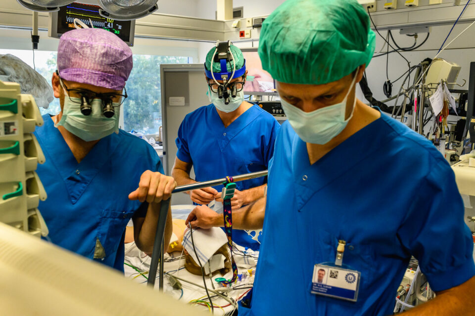 Kinderhartchirurg Dr. B. van Wijk tijdens de openhartoperatie van Hartekind Puck (11 maanden) in het Wilhelmina Kinderziekenhuis (WKZ) in Utrecht. Foto Sandra Stokmans Fotografie