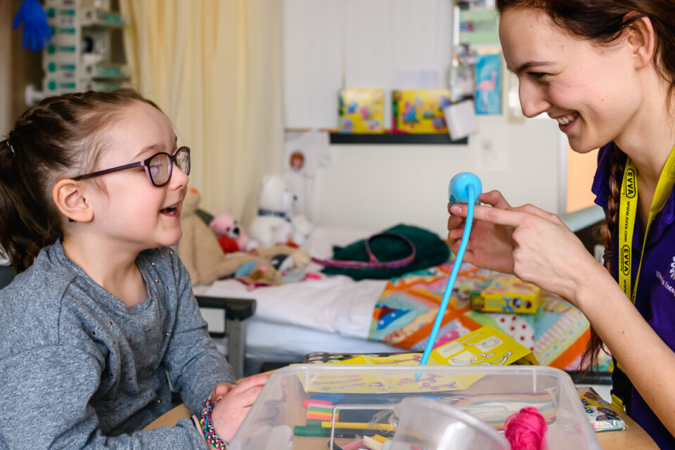 Ziekenhuisreportage, zorgfotografie, pedagogische zorgmedewerker aan het werk in het WKZ Utrecht, foto door Sandra Stokmans Fotografie