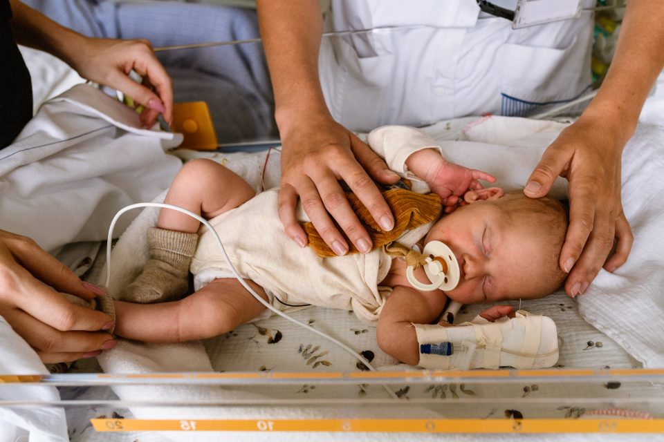 Zorgfotografie, documentaire fotografie van Hartekind baby na openhartoperatie in de ICU bij het WKZ te Utrecht, foto door Sandra Stokmans Fotografie